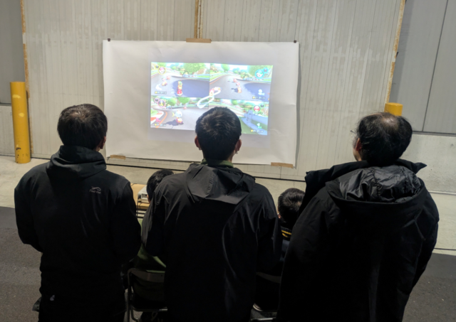 先輩後輩入り混じり、マリオカートで対戦。